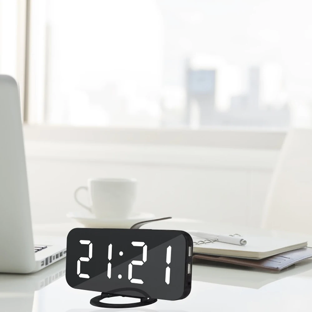 Будильник цифровой электронный умный механический светодиодный дисплей настольное время 2 USB-порта для зарядки для Iphone Android зеркальный Повтор сигнала