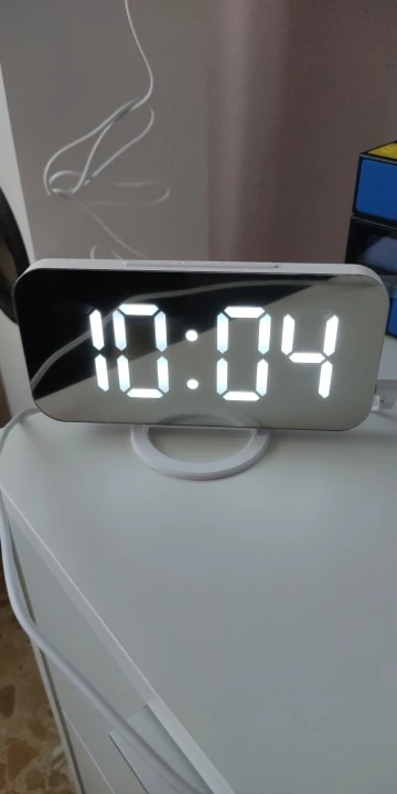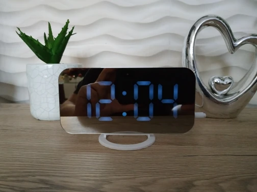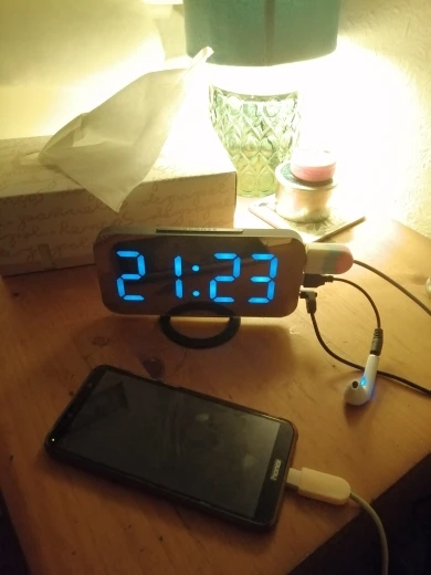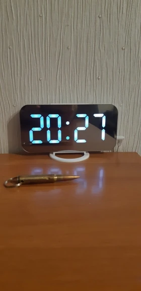 Очень хороший будильник. Размер телефона. Яркий экран в дневное время и мягкий свет в ночное время. Очень хороший звуковой сигнал, не громкий. Идеально.