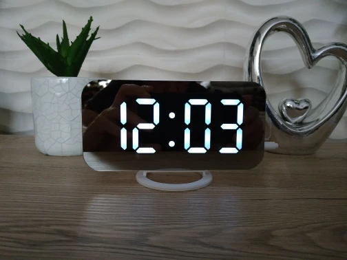 Bardzo szybka dostawa. Cyfra zegara ma wymiary 23mm na 47mm. Automatyczna regulacja jasności działa płynnie, a nie w 3 stopniach, jak przy ręcznej regulacji. Umiejscowienie czujnika światła z boku zegara to zły pomysł - w czasie dnia jasność ustawia się na minimum, a gdy obrócę czujnikiem w stronę okna - rozjaśnia się. W nocy jest trochę za jasny ze względu na wielkość cyfr. Jeśli chcesz mieć naprawdę ciemno w sypialni, weź inny kolor wyświetlacza - nie biały.