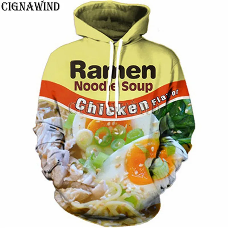 Толстовка с капюшоном для мужчин и женщин, японская кофта с 3D-принтом рамен-лапши, Повседневная Уличная одежда в стиле Харадзюку