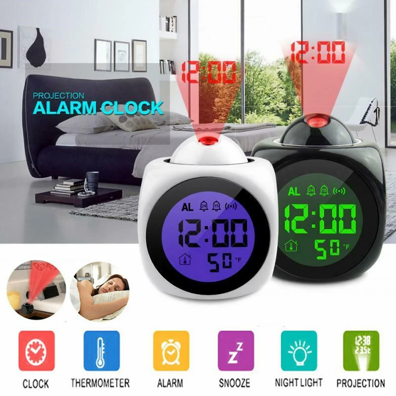 Проекционный Будильник цифровой ЖК-дисплей Голос говорящий Повтор температуры светодиодный настенные часы для потолка проекция многофункциональный