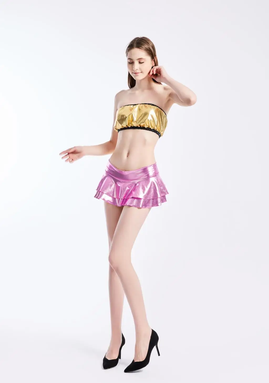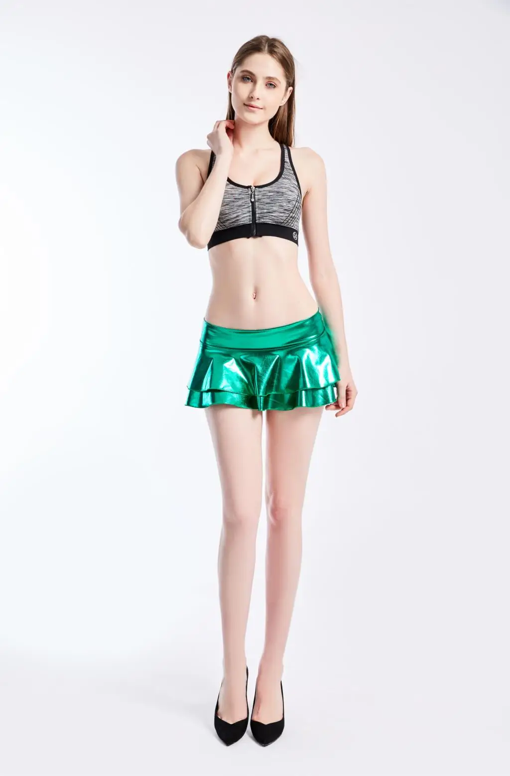 2021 Золотая блестящая Сексуальная светящаяся мини-юбка с низкой та...