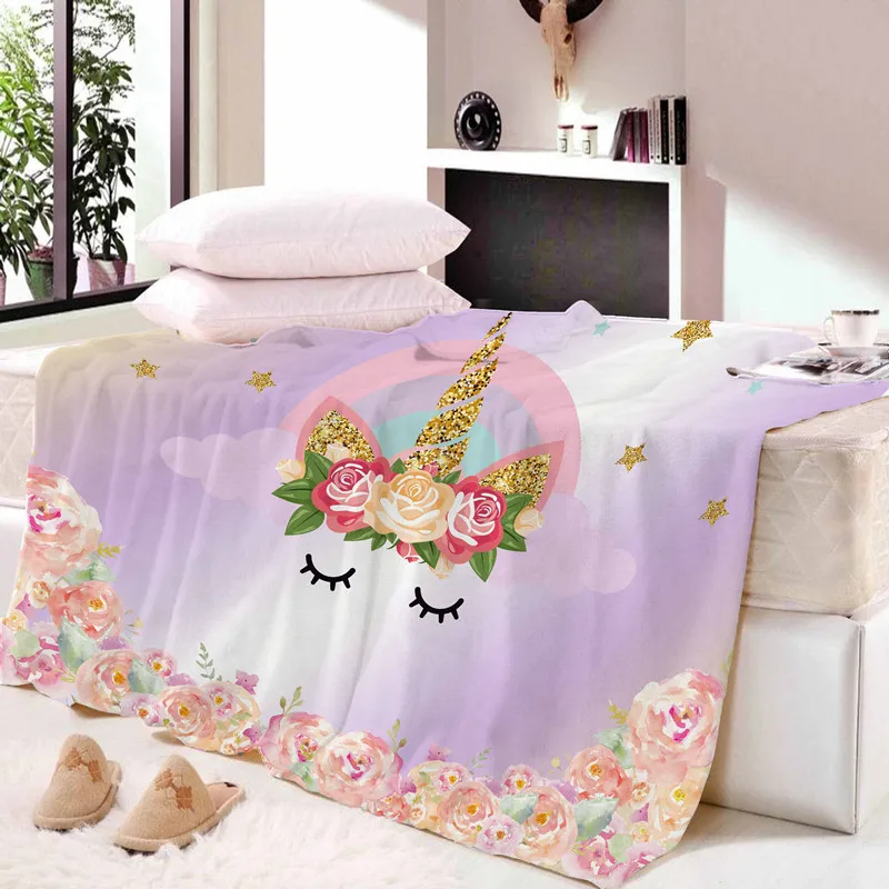 Детское одеяло из шерпы, тонкое супермягкое покрывало с 3D-принтом единорога, летнее покрывало для путешествий, Прямая поставка