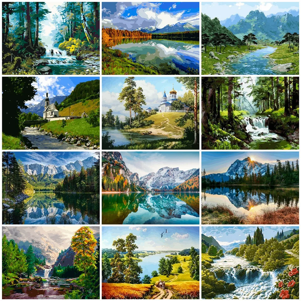 AZQSD без рамки DIY Краска ing по номерам Набор для создания пейзажа Акриловая Краска на холсте Современное украшение на стену, живопись маслом Краска ing для гостиной 50x40
