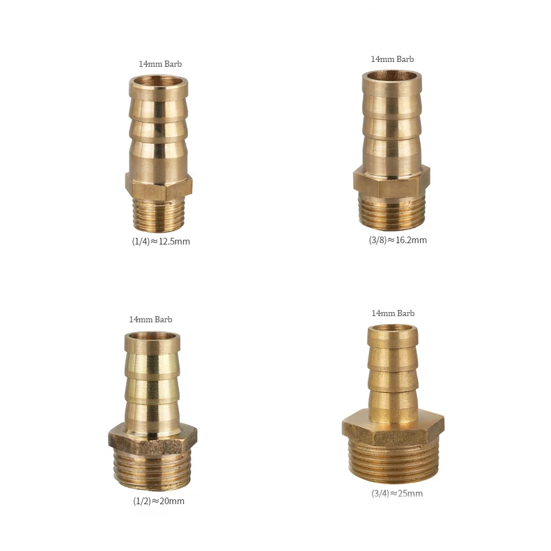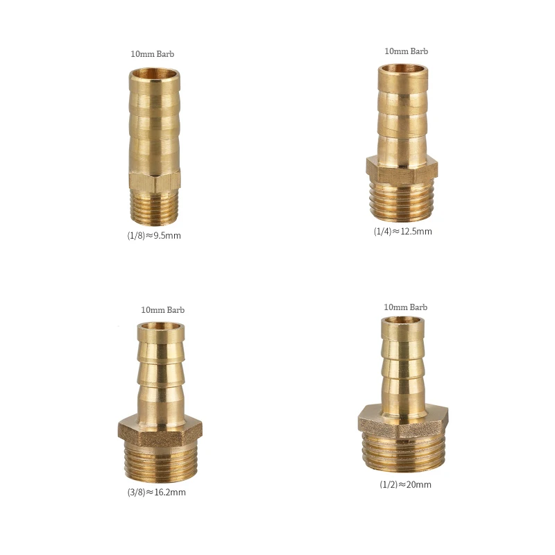 Латунный фитинг для труб 4 мм, 6 мм, 8 мм, 10 мм, 12 мм, 19 мм, Хвостовик с зазубринами для шланга 18 дюйма, 14 дюйма, 12 дюйма, 38 дюйма, дюйма, Штекерный соединитель BSP, медный переходник
