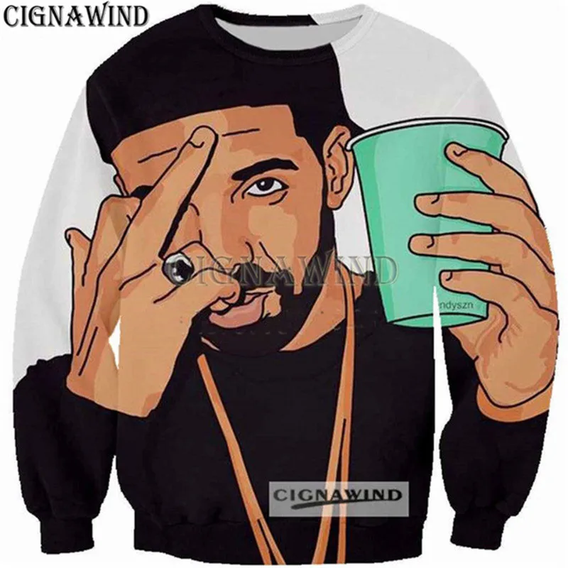 Модная крутая Толстовка для мужчин и женщин, толстовки в стиле хип-хоп с 3D-принтом рэпера и Дрейка, свитшоты, Повседневная Уличная одежда в стиле Харадзюку, топы