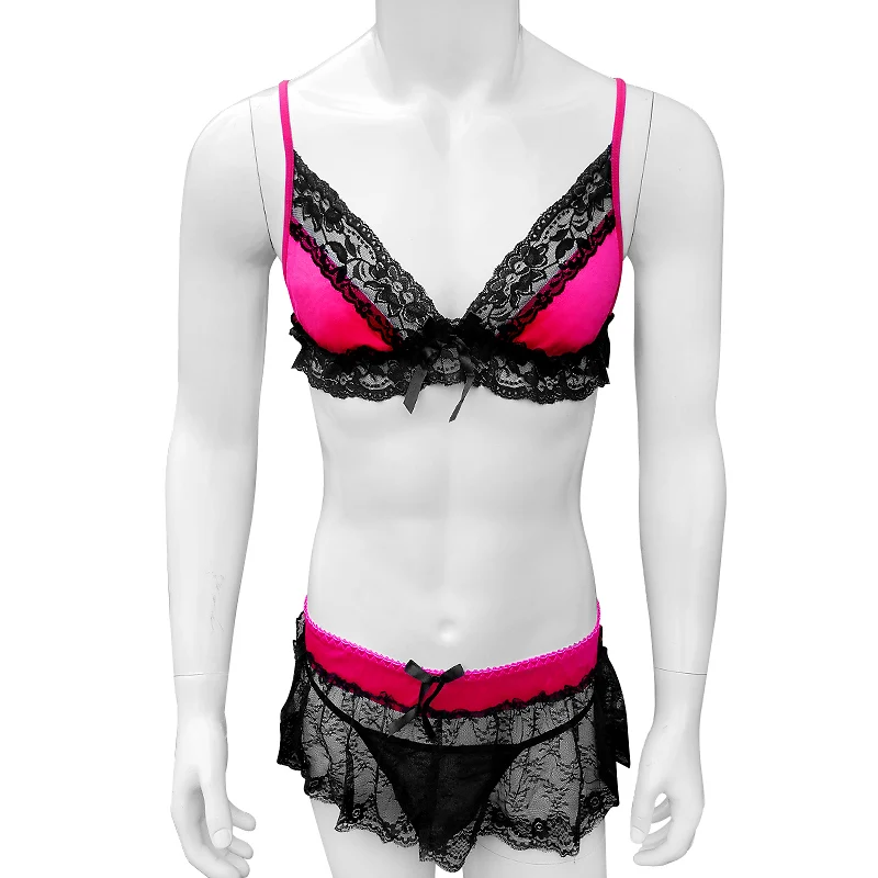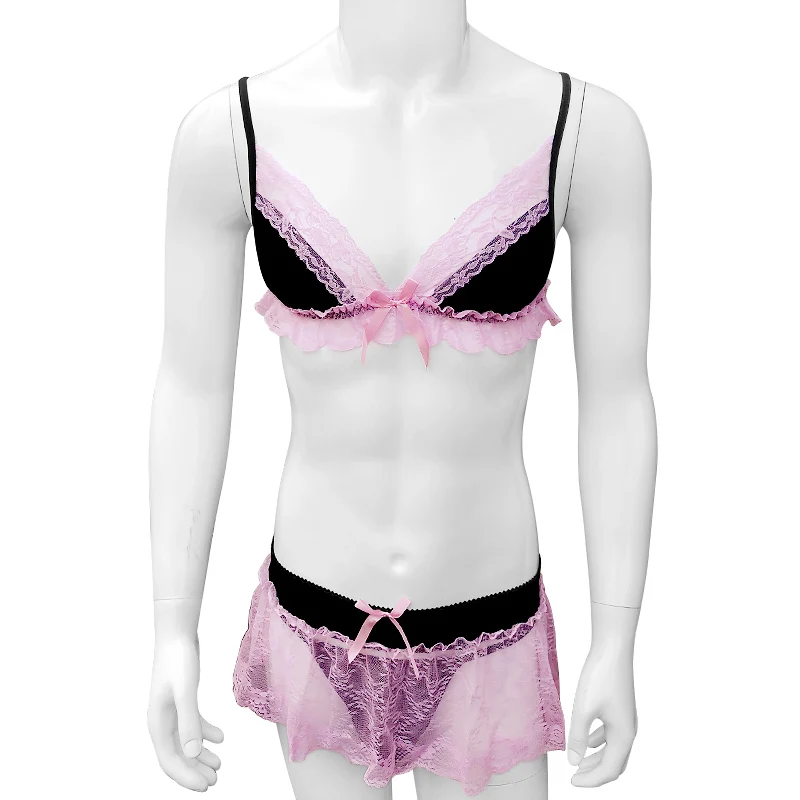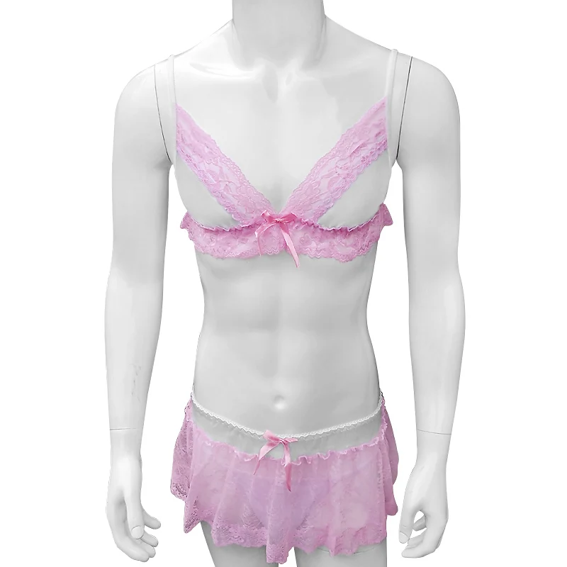 Комплект нижнего белья для мужчин, кружевное мини-платье с оборками и стрингами