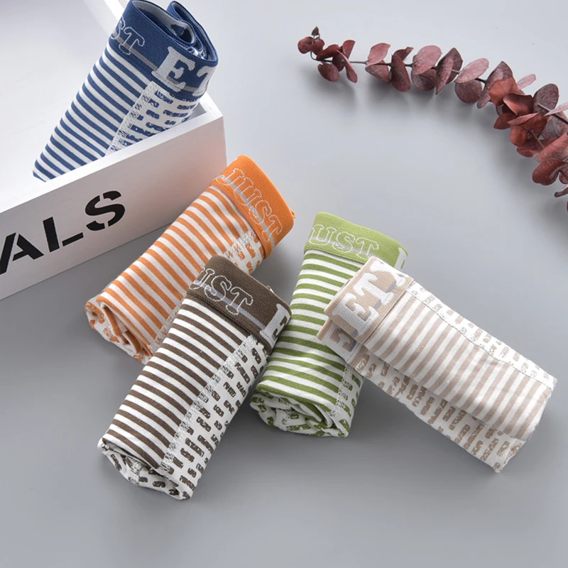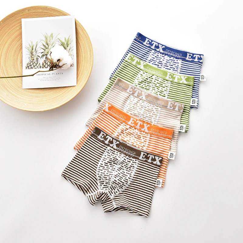 5 шт.лот, хлопковые трусы в полоску для мальчиков, мягкие трусы-боксеры для подростков и школьников