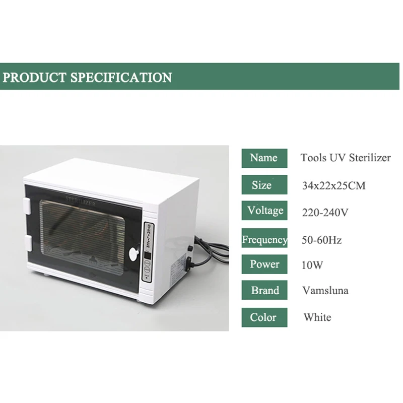 1. Встроенная УФ-лампа генерирует Озон Для Стерилизации различных типов инструментов; УФ-отражение с обеих сторон и сияющее дно обеспечивают стерилизацию.2. Прозрачная дверь для легкой проверки процесса стерилизации.3. Одобрено CE; Предохранитель защищен4. Перфакт для салонных и спа-инструментов.5. Отлично подходит как для коммерческого, так и для семейного использования.
