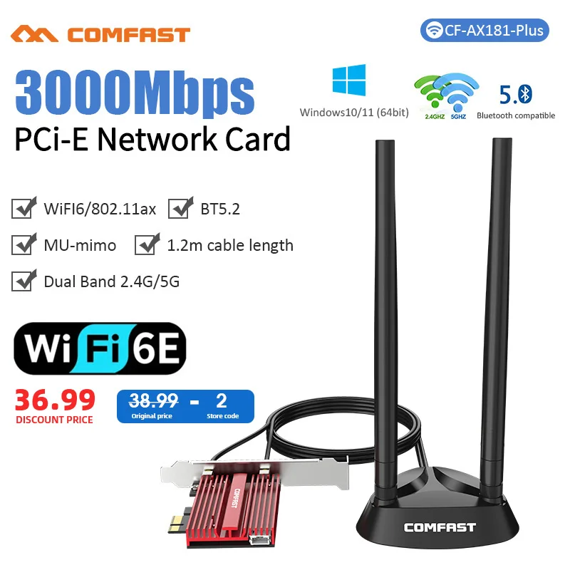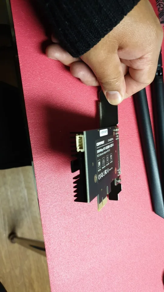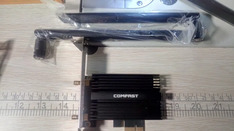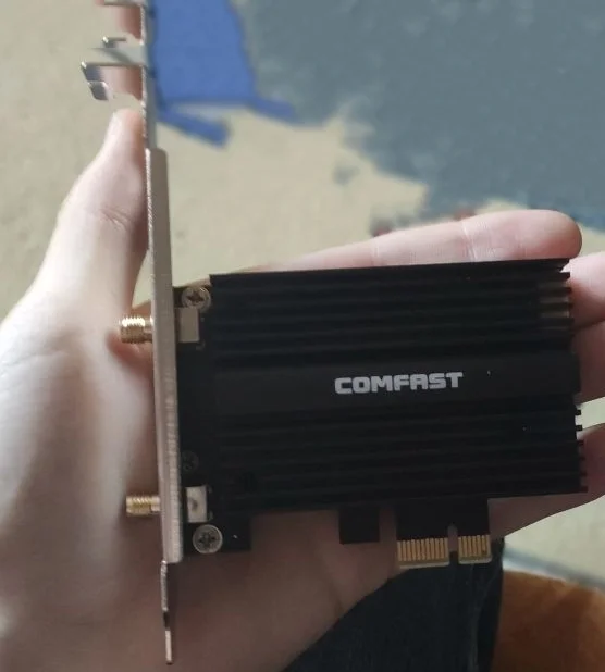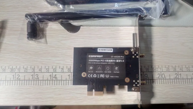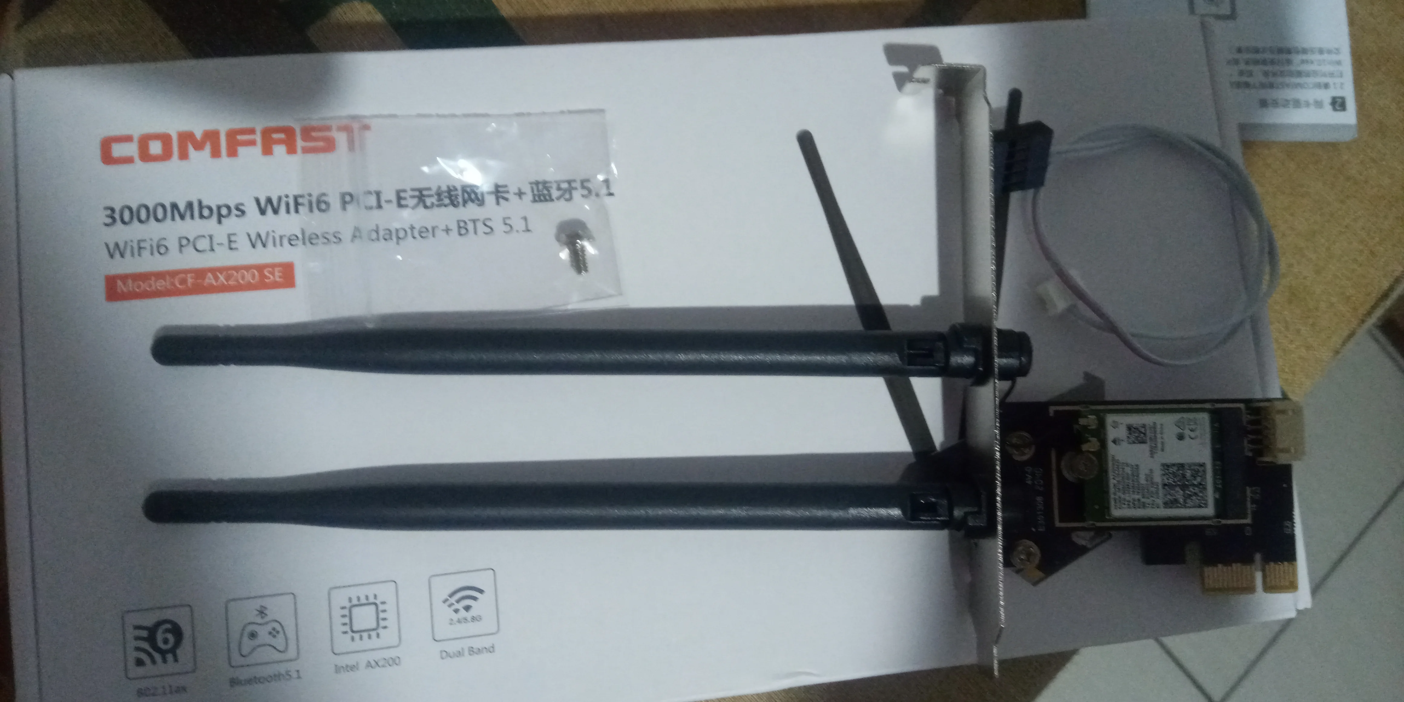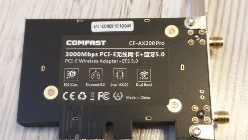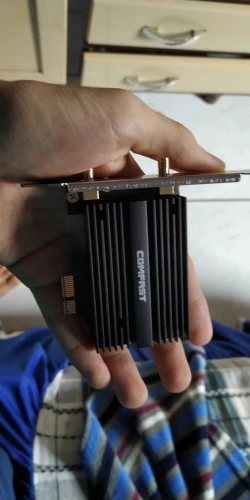 Сетевая плата приехала в Москву за 2-3 недели. За 2200 рублей плата достойная: в Москве за эти деньги плату с похожими характеристиками не найти. Конечно, у меня нет маршрутизатора с поддержкой wifi 6, но оно мне и не нужно. Плату в первую очередь брал для того, чтобы иметь стабильно быстрый беспроводной интернет, скорость которого не будет "проседать" из-за перегрева адаптера/платы. До этого использовал дешманский usb "свисток" с поддержкой wifi 5Ghz, и при выгрузке файлов в Google диск адаптер всё время перегревался и отключался, это было просто мучение. Я бы с радостью подключил ethernet кабель, но из-за дальнего расположения компьютера в квартире относительно маршрутизатора это сделать проблематично. Также решил взять такую плату из-за наличия Bluetooth, при этом актуальной версии. В целом, я получил то, чего хотел. Адаптер по wifi 5Ghz выдаёт 260-300 Мбит/сек на скачивание и загрузку. Он может гораздо большее, но из-за расположения компьютера скорости больше никак не получить.