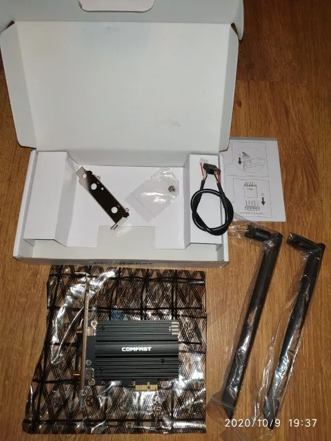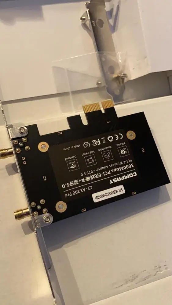 Хорошо. Работает идеально. Было трудно поместить его чуть выше графической карты, потому что пространство узкое и в моем MB , Aorus B450 pro, один из пластиковых деталей почти не позволяет мне поместить его в PCI X1 (короткий), но, наконец, он подходит. Надеемся, что температура не будет проблемой. BLUETOOTH кабель ОК. Работает. Wi-Fi ловит 300mbs или 290mbs (я плачу за 300) Я проверю его в этом входящем месяце. Сомнения между 4 или 5 Sharad