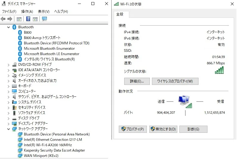 При установке была проблема в диспетчере устройств: This device cannot find enough free resources that it can use. (code 12). Проблема решилась установкой свежего драйвера. Драйвер есть и в описании товара, но лучше его скачать с сайта Intel. Там и версия свежее и качается он быстрее. Скорость оказалась отличная. Конечно, не заявленные 3000 Мбит/с, но всё равно. Естественно, для такой скорости нужен соответствующий роутер (у меня ASUS RT-AX58U). Если роутер поддерживает только 802.11n, то, конечно, скорость будет значительно ниже. С bluetooth тоже никаких проблем. Воспроизводит аудио нормально, никаких прерываний во время работы не заметил.