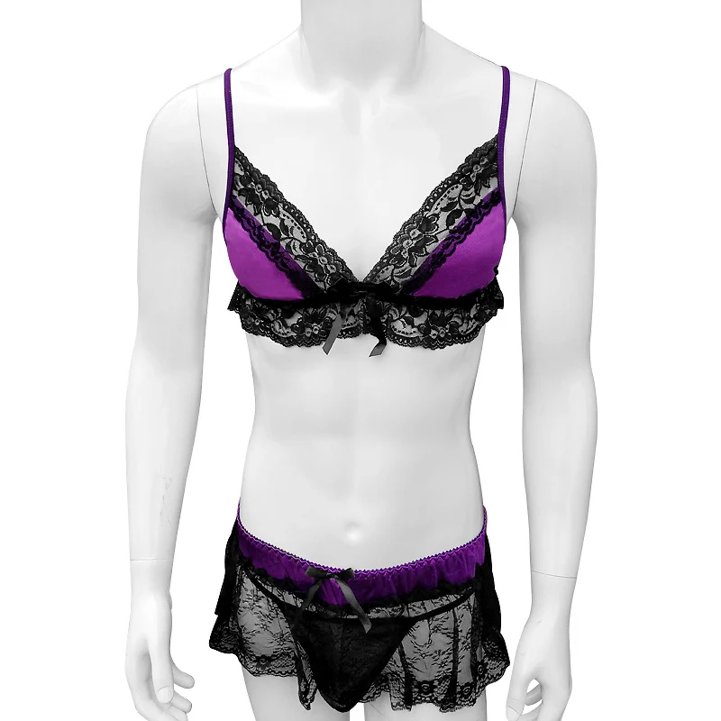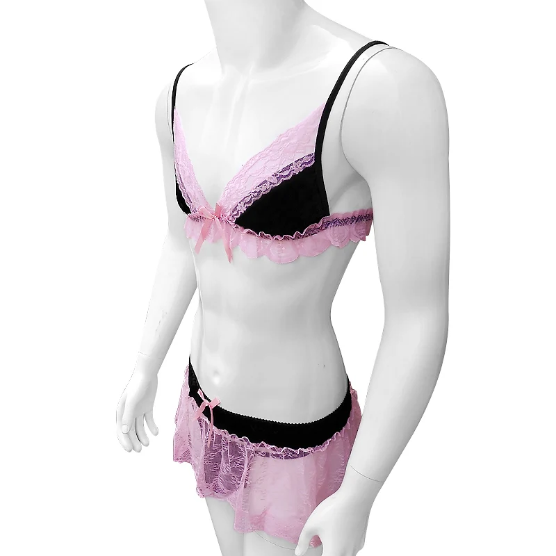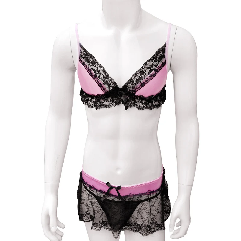 Комплект нижнего белья для мужчин, кружевное нижнее белье с оборками, трусики-стринги, мини кружевное платье, пижамный комплект, одежда для сна на бретелях-спагетти