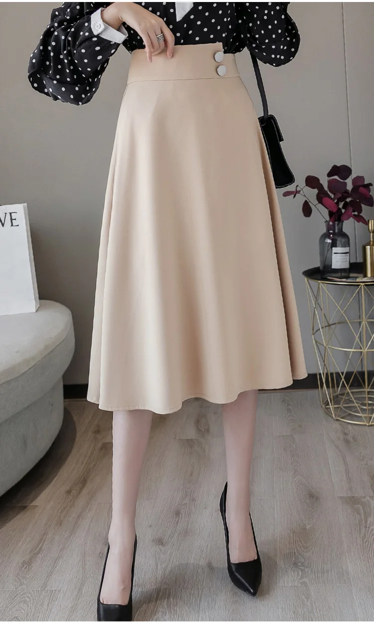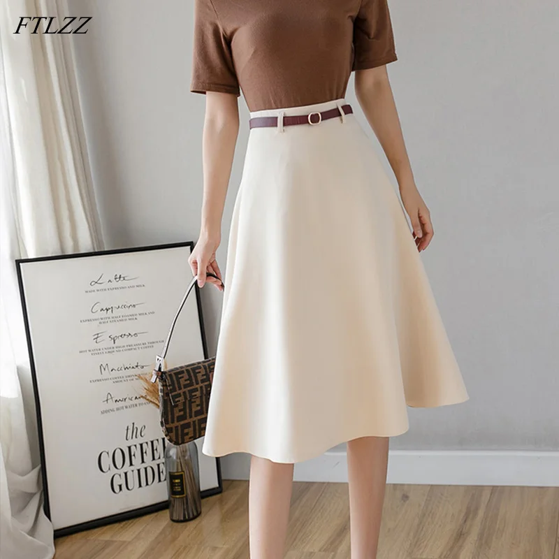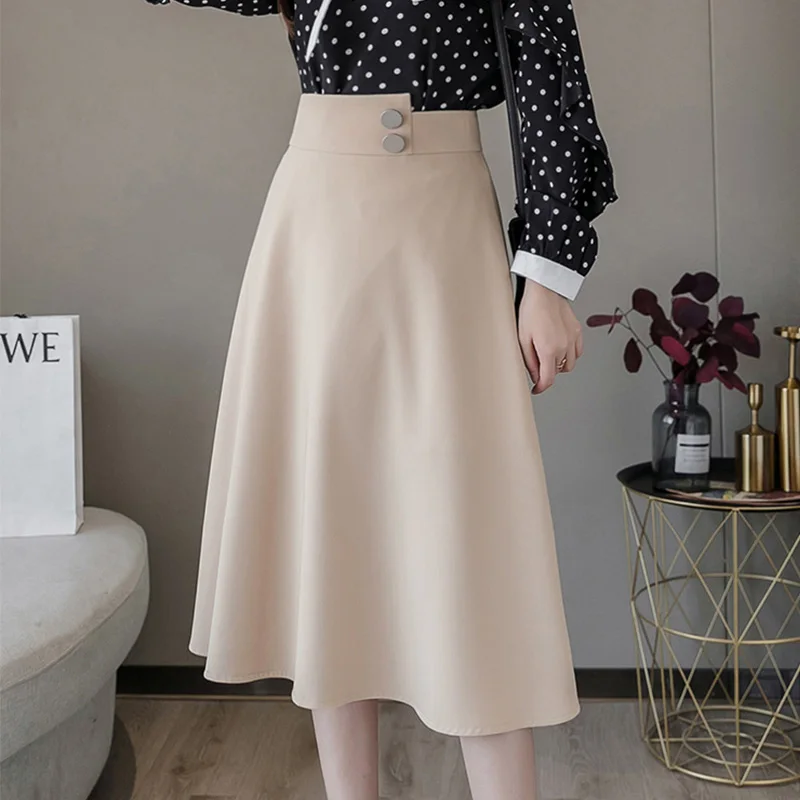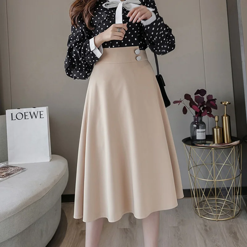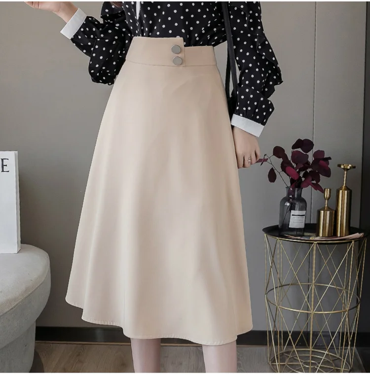 FTLZZ новая весенняя женская юбка средней длины с двойной пуговицей, повседневная женская однотонная офисная бежевая юбка