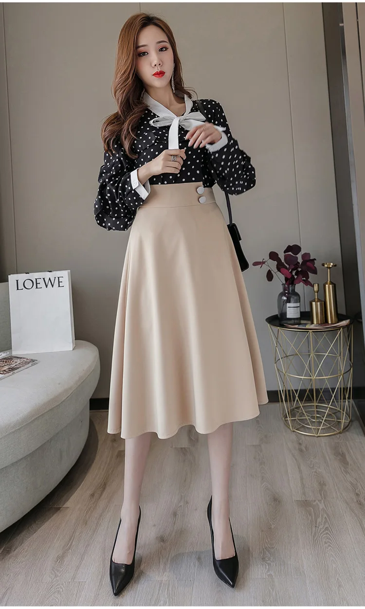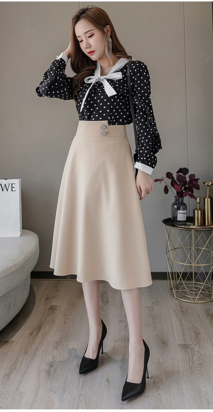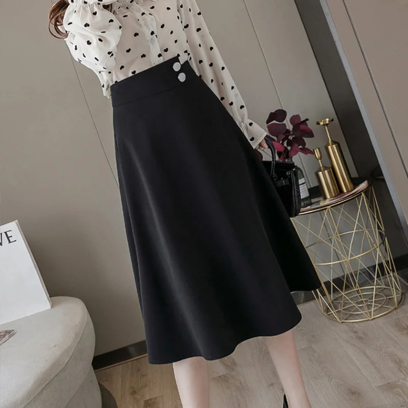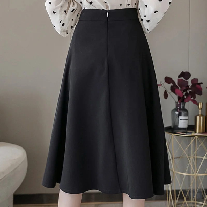 FTLZZ новая весенняя женская юбка средней длины с двойной пуговицей, повседневная женская однотонная офисная бежевая юбка