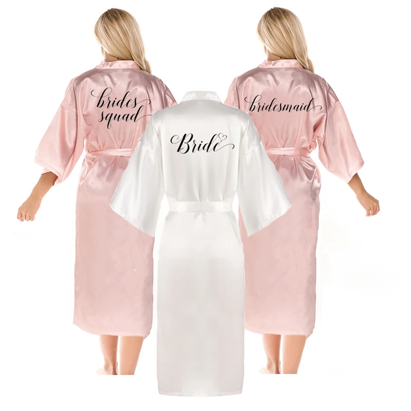 Халат-кимоно Женский Длинный атласный, светло-розовый Шелковый вечерний свадебный халат, вечерние для невесты и подружки невесты, 2020