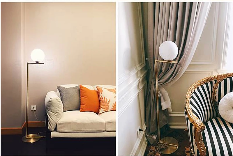 Современный светодиодный напольный светильник, стеклянный шар, стоячие лампы для гостиной, спальни, Золотой светодиодный напольный светильник, светильники