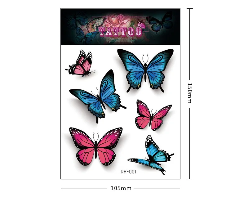1 шт. Сексуальная 3D бабочка временная татуировка наклейка для женщ...