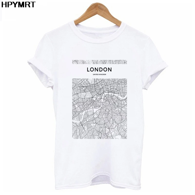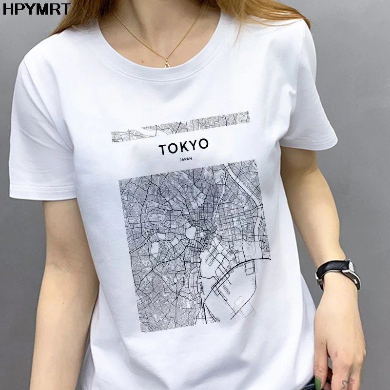 Футболка женская черно-белая с изображением карты мира Нью-Йорк Токийский Париж Футболка с принтом Harajuku повседневные футболки женские Топы Одежда
