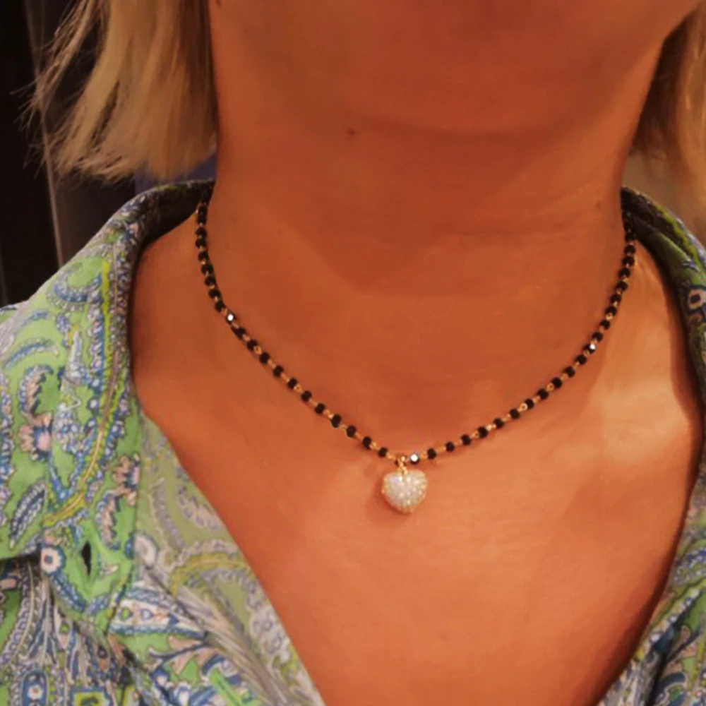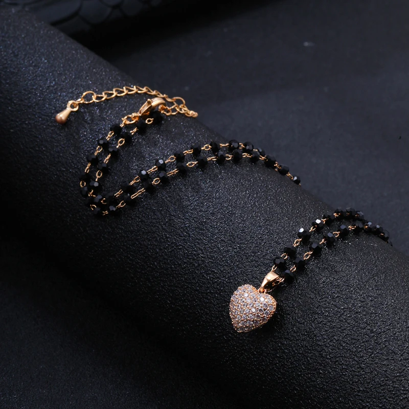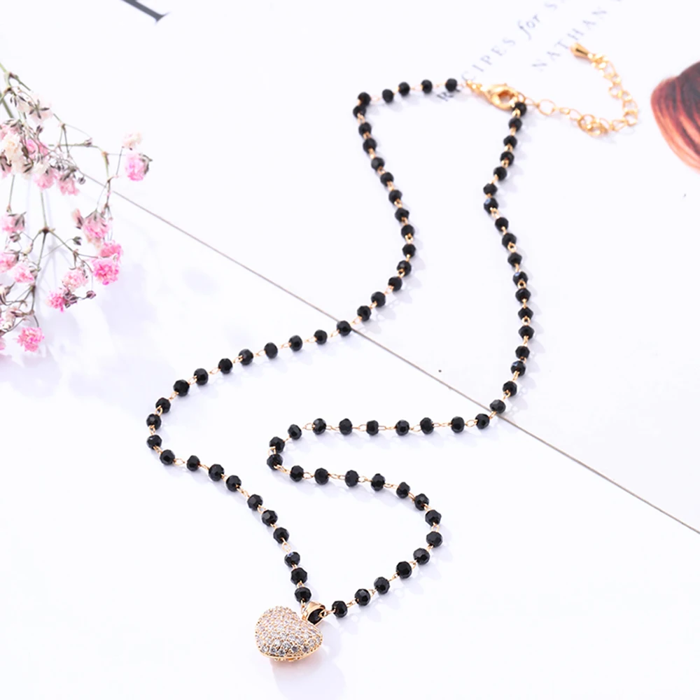 Ожерелье-чокер женское, с кулоном из черного бисера, 2021 CZ 3D