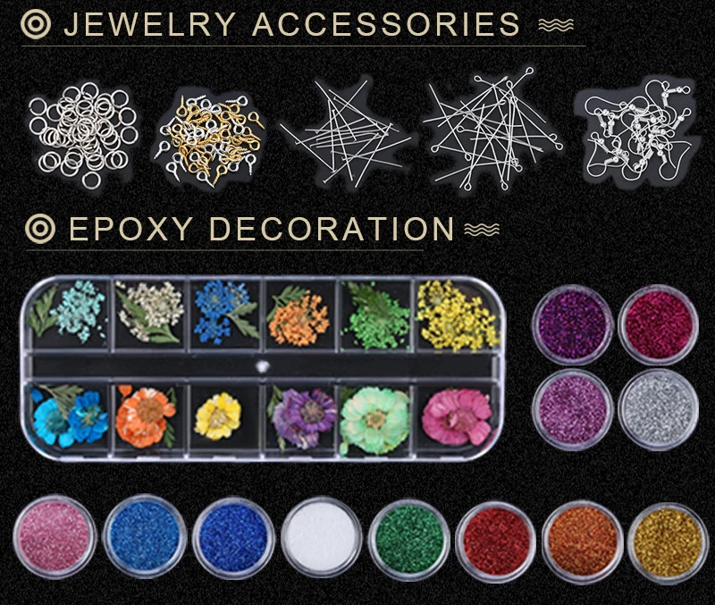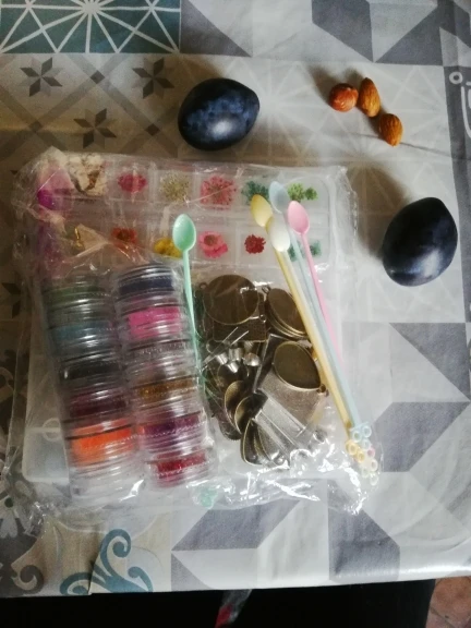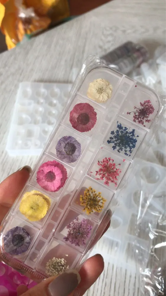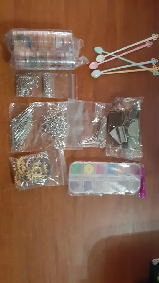 Сын заинтересовался изделиями из эпоксидки, и было решено взять этот набор. Очень довольны! 1. Силиконовая форма, что радует, значит, будет легко вынимать застывшую заготовку. 2. 24 красивейших цветка (12 видов по два). 3. Огромное количество заготовок под украшения (разных форм и цветов: под латунную старину и серебро), шестеренок - для украшений в стиле стимпанк самое то. 4. 14 невероятных цветов блесток и пять длинных ложечек. 5. До Подмосковья посылка долетела за 20 дней. Осталось только купить эпоксидный клей и начать экономить на украшениях))) Спасибо продавцу! Будем покупать у него ещё.