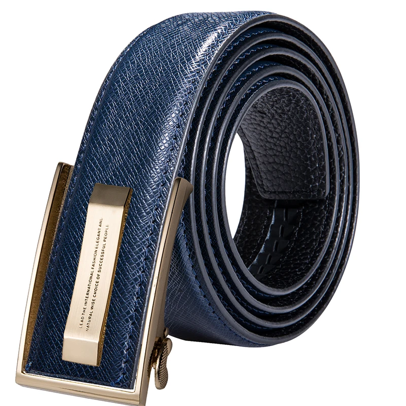 Hi-Tie Модные ремень коровьей кожи ковбойские ремни для мужчин модные синие коричневые кожаные роскошные ремни автоматические золотые металлические пряжки ремень