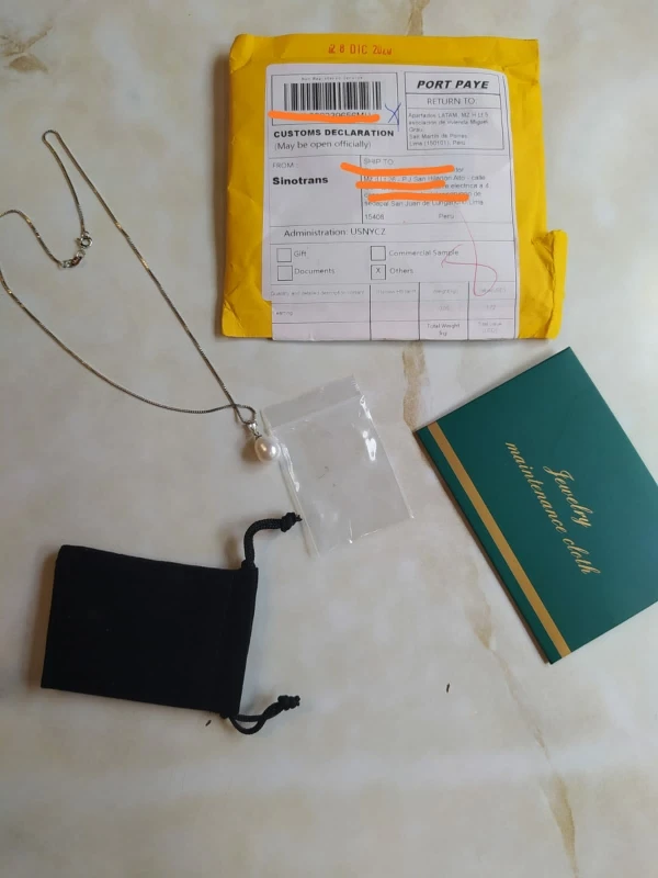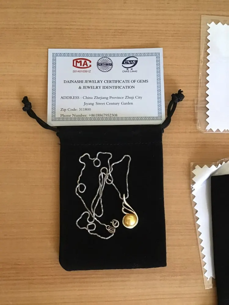 I received a necklace with a pearl, very elegant and miniature. The chain is like a thread, I hope it is reliable. Thank you very much for now. Колье с жемчужиной получил, очень изящно и миниатюрно. Цепочка как ниточка, надеюсь надежна. Спасибо большое, пока все устроит.