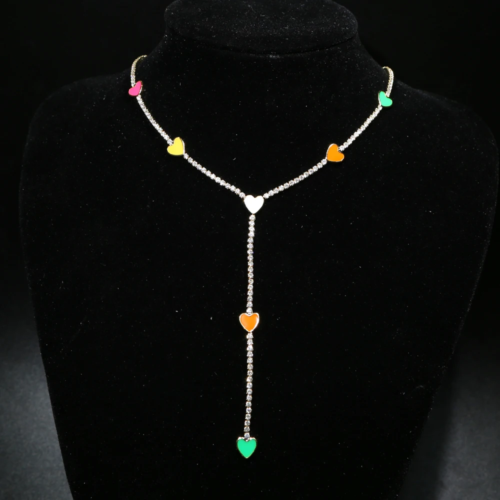 Новое поступление, летнее колье-чокер с эмалью в форме сердца, длинное ожерелье Y lariat, для сексуальных женщин, девушек, для вечеринки, свадьбы, ювелирное изделие, подарки