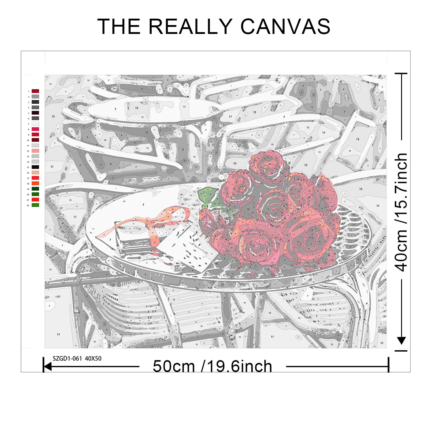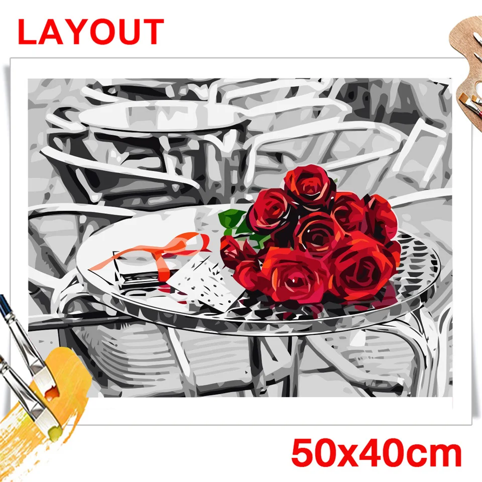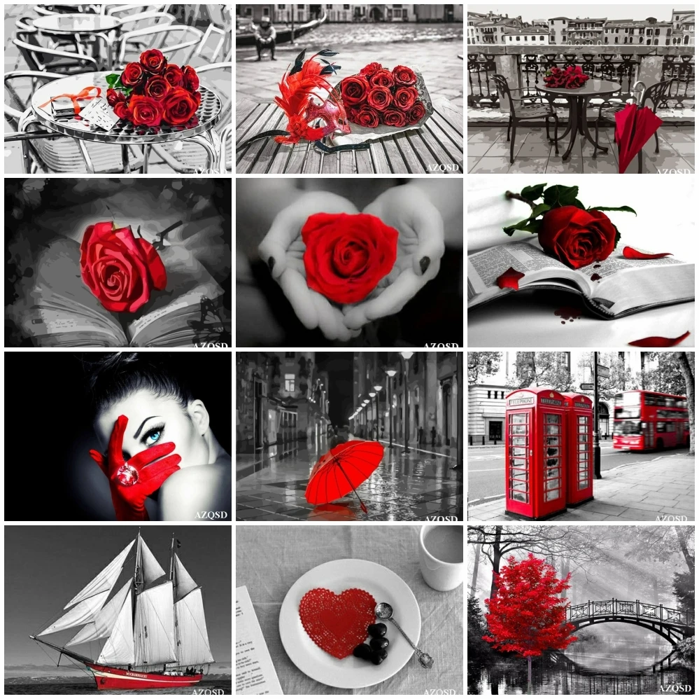 AZQSD без рамки картина маслом черный и красный серии на холсте наборы Роза живопись по номерам пейзаж ручной работы подарок 50x40cm
