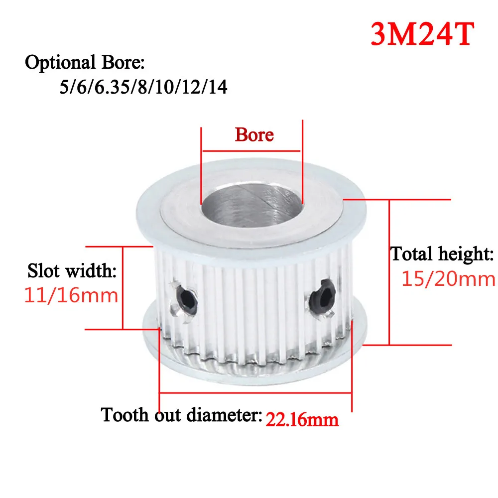 AF тип 24 зубца 3 м зубчатый шкив отверстие 5 мм 6 мм 6,35 мм 8 мм 10 мм 12 мм 14 мм для ремня HTD используется в линейном шкиве 24 зуба 24 T