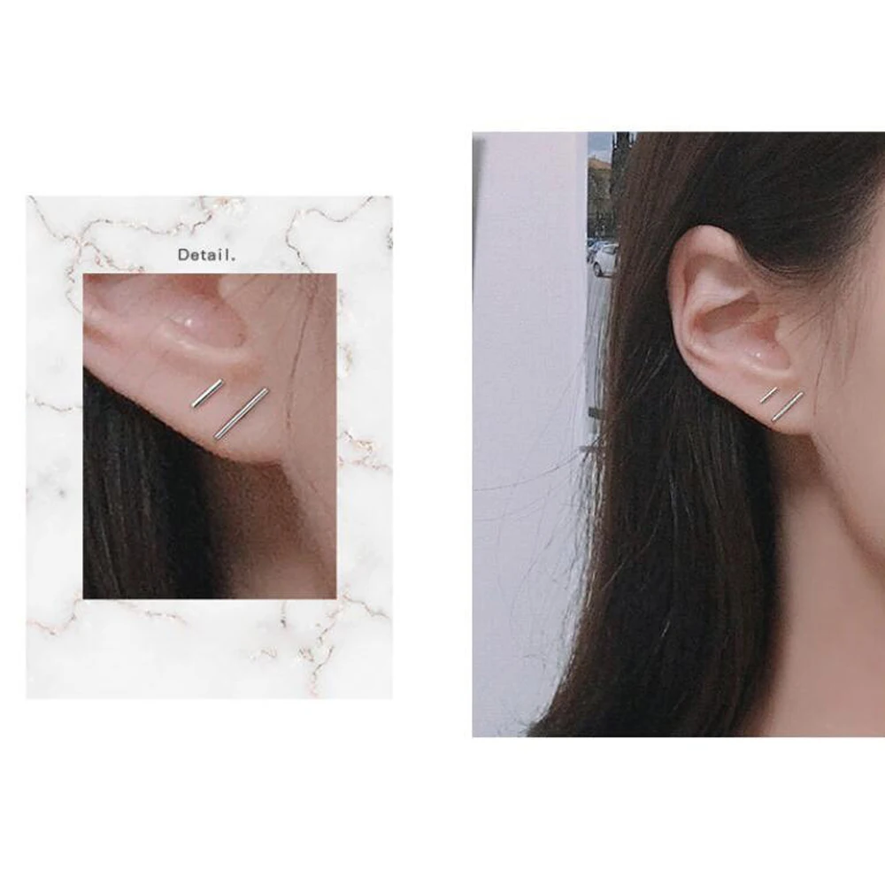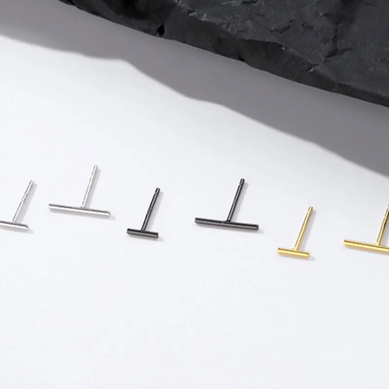 Серьги-гвоздики 6 мм, 12 мм, простые серьги-гвоздики, стиль т-образной формы, золото или черная пластина, минималистичная линия, серьги в подарок для нее