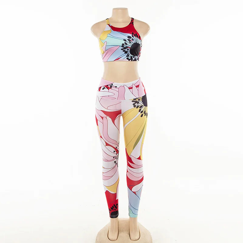 Женский комплект для йоги CHRLEISURE с принтом, женская одежда для спортзала, спортивный комплект с бюстгальтером с открытой спиной, леггинсы с высокой талией, одежда для фитнеса