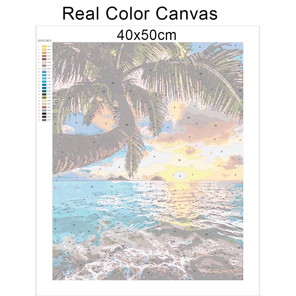 HUACAN рамка Раскраска по номерам закат пляжное масло картина подар...