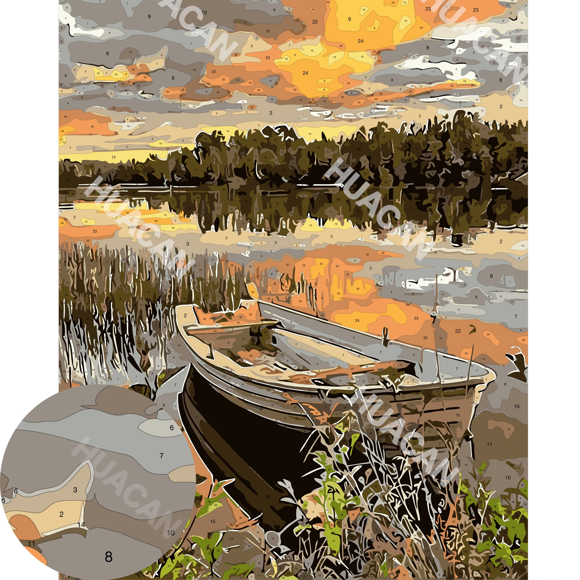 HUACAN раскраска по номеру озеро наборы картина маслом для домашнег...