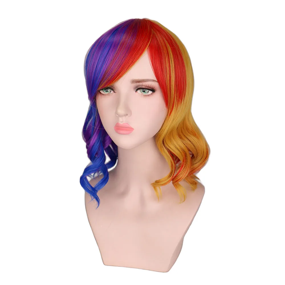 QQXCAIW Короткие вьющиеся парики для женщин cospplacy многоцветный ...