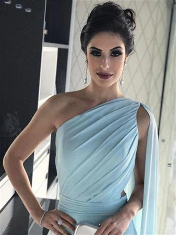 Шифоновые платья на одно плечо для матери невесты, модель 2021 года, трапециевидные платья без рукавов с иллюзией на спине для сдержанных свадебных торжеств
