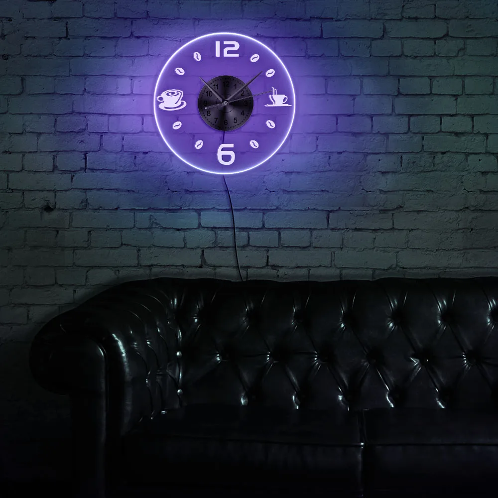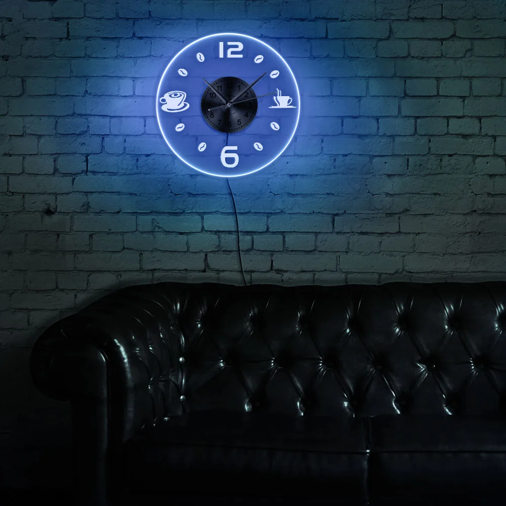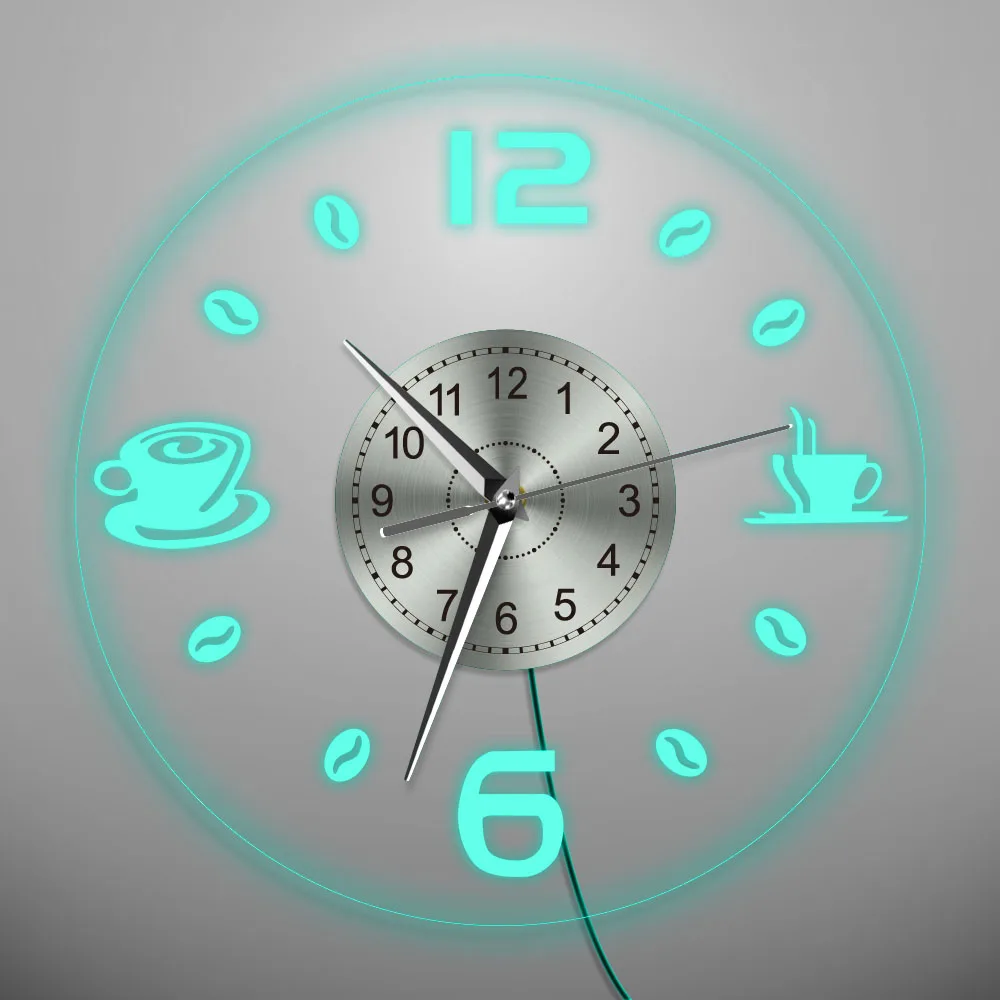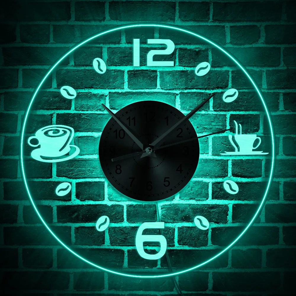 Настенные часы с изменением цвета кофе, современные светодиодсветодиодный акриловые LED светильники в виде кофейных зерен, подвесные настенные часы для кофе