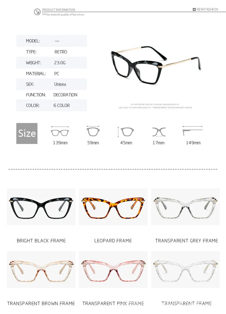 1Пол: женщинМатериал оправы: ПКСтиль: Cat EteНазвание отдела: взрослыйМатериал линз: поликарбонатШирина линз: 59 ммВысота линз: 45 ммТип очков: очки для чтенияТип товара: очки для чтенияПол/Возраст: женщина, девушка, молодая леди, мужчина, мужчинаОбласть использования: езда, вечерние, путешествия, шоппинг, шоу, на открытом воздухе, Спорт, клуб