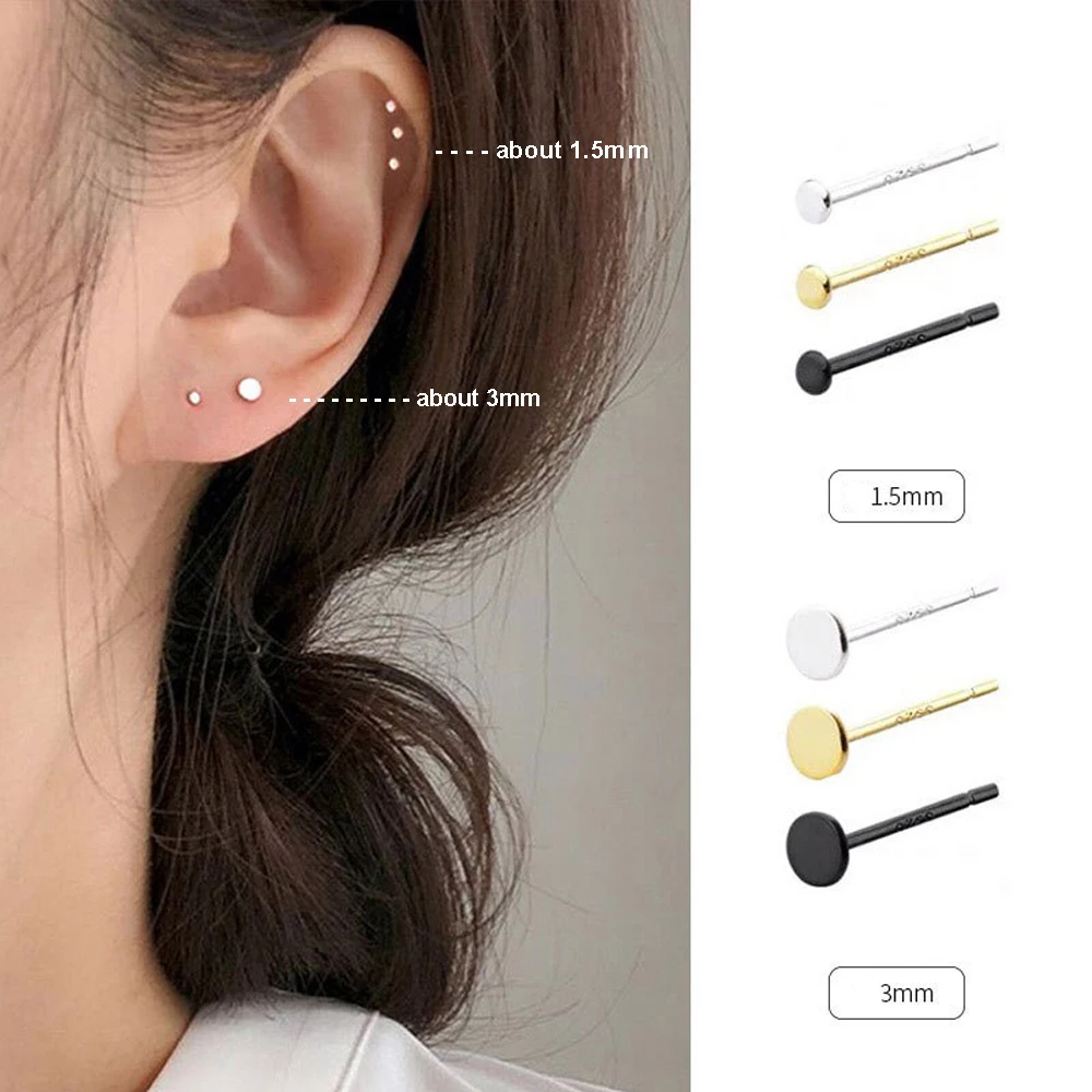 Крошечные точечные штифты, изящные мини-серьги-гвоздики 1,5 мм 3 мм, золотые или черные шпильки, самые маленькие серьги-гвоздики в стиле постпризрака