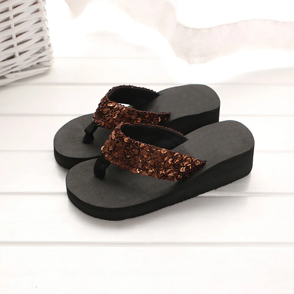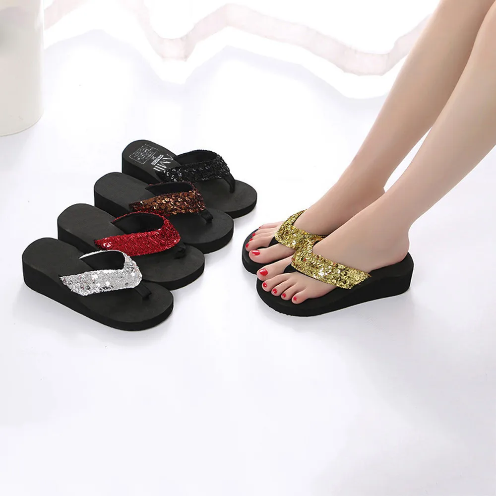 Шлепанцы женские с пайетками, Нескользящие повседневные пляжные тапочки, открытый носок, плоский сандалии пляж, летняя обувь, Xew