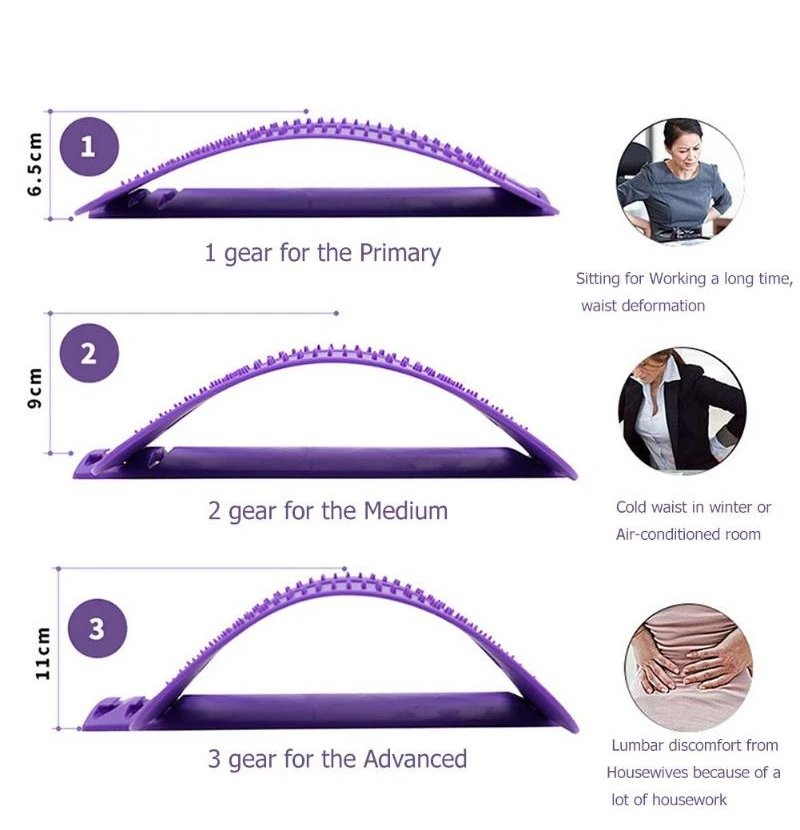 Особенности:3 шестерни можно отрегулировать, а угол заднего банта можно регулировать в соответствии с потребностями, чтобы удовлетворить потребности в упражнениях на талии.Имитация массажа пальцев, иглоукалывание, усовершенствованный PP материал, прочный, есть 150 массажных контактов.Дуга растягивается, для укладки и сидения.Пусть Талия вернется к нормальной физиологической изгибе 26 градусов.