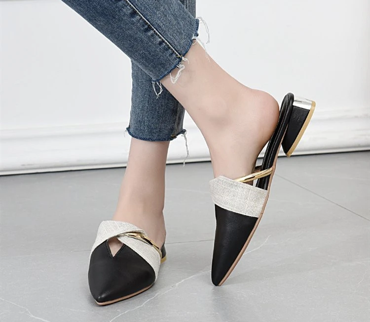 Мюли женские на низком каблуке, элегантные пикантные туфли-лодочки, заостренный носок, без застежки, офисная обувь для отдыха, бежевые, на лето