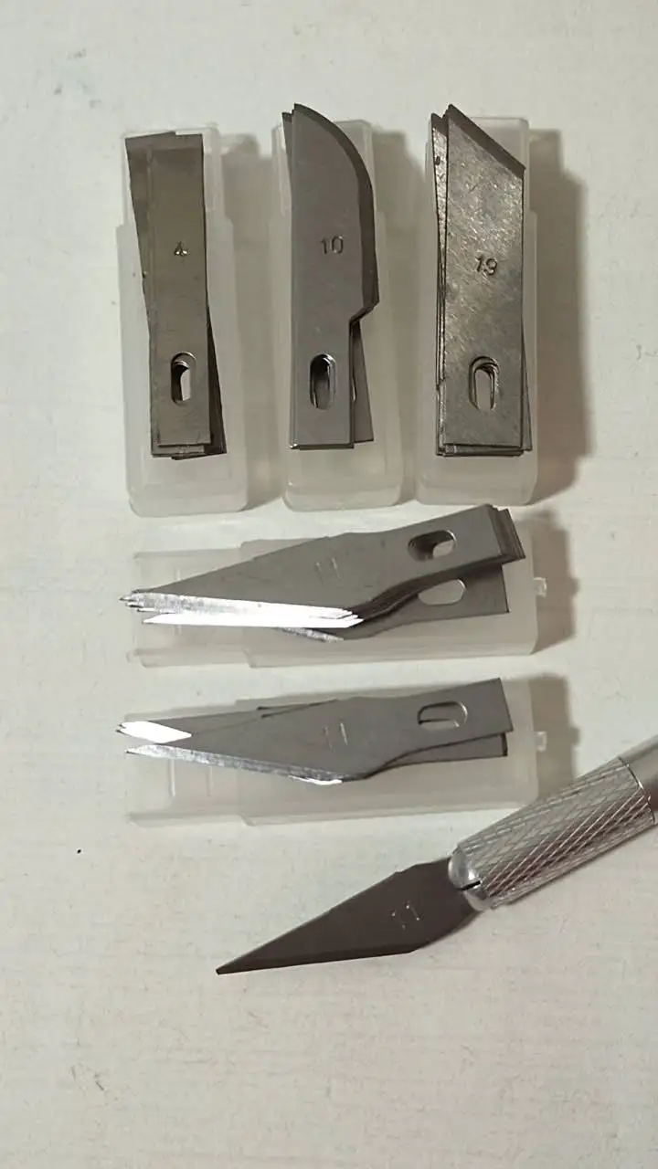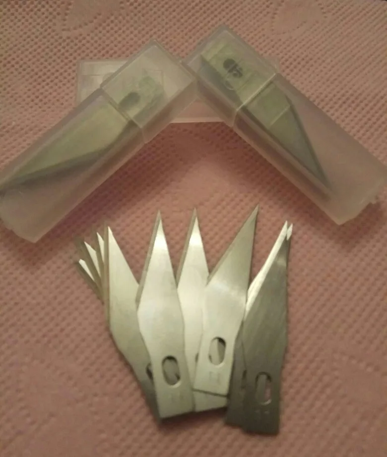 Доставка быстрая, объединили с другой посылкой и отслеживалось полностью. 11.12 заказал 28.12 уже на почте. 10 штук в пластиковом футляре. Острые, не бритва конечно но волосы на руке сбивает. Покупались для самодельной ручки, подошли идеально.
