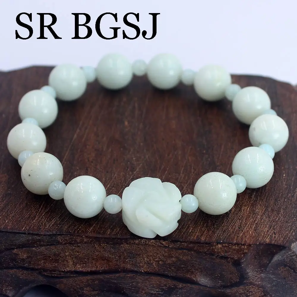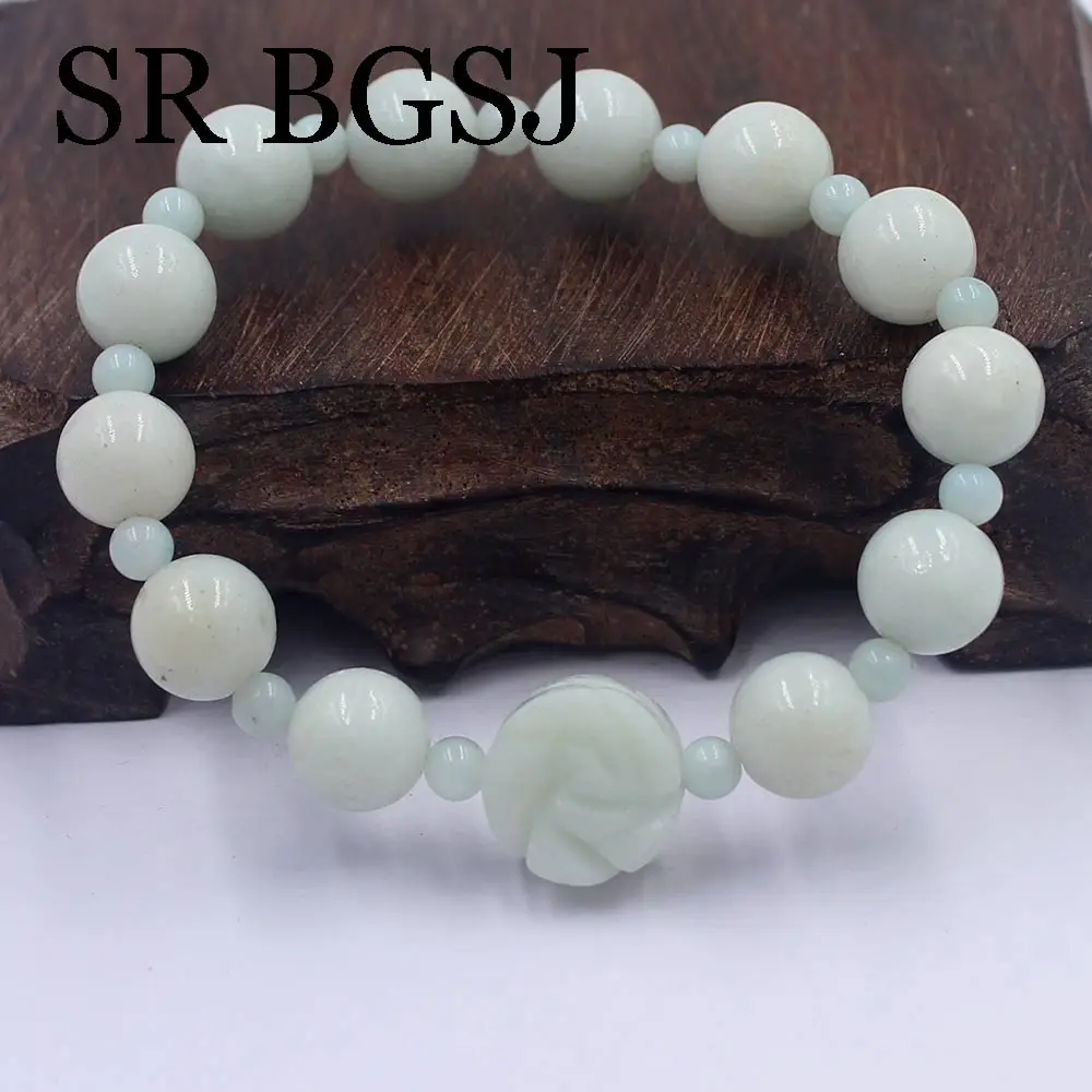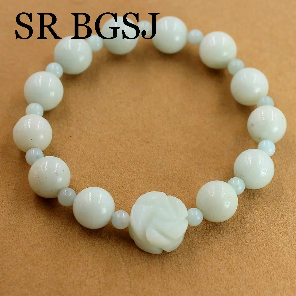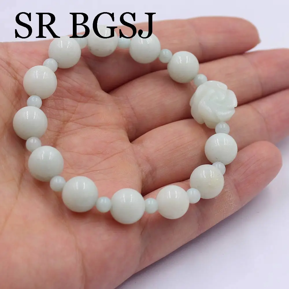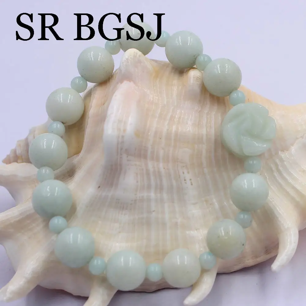 Бесплатная доставка, модное ювелирное изделие для женщин из натурального зеленого драгоценные камни чистый Амазонит эластичный браслет с цветком 7,5 дюймов