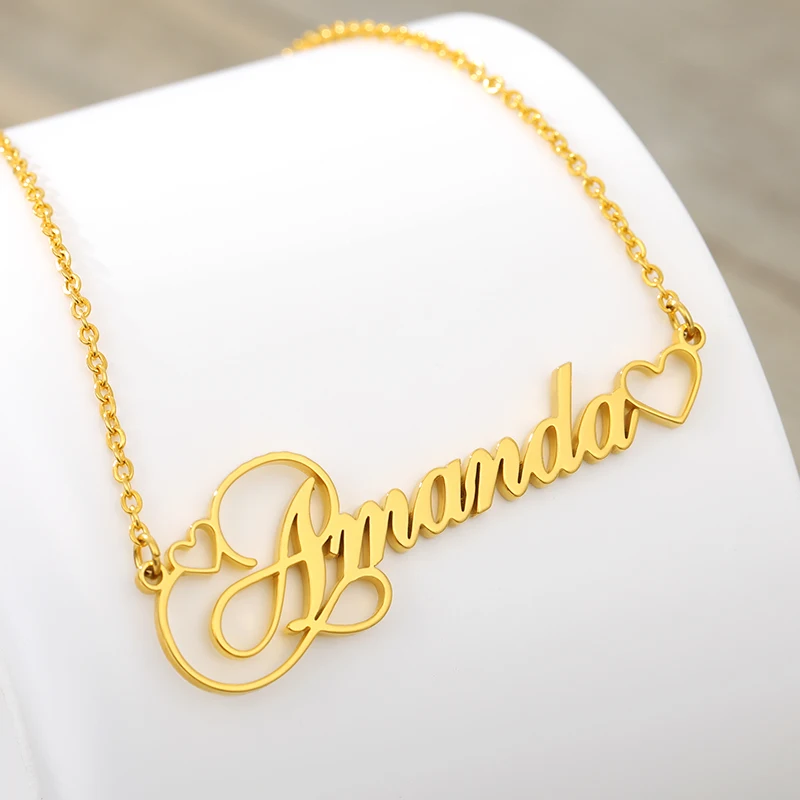Ожерелье с двойным пустым именем сердца спереди и сзади, Модные индивидуальные ожерелья с именем, подвески из нержавеющей стали, персонализированные подарки