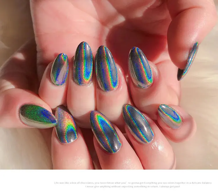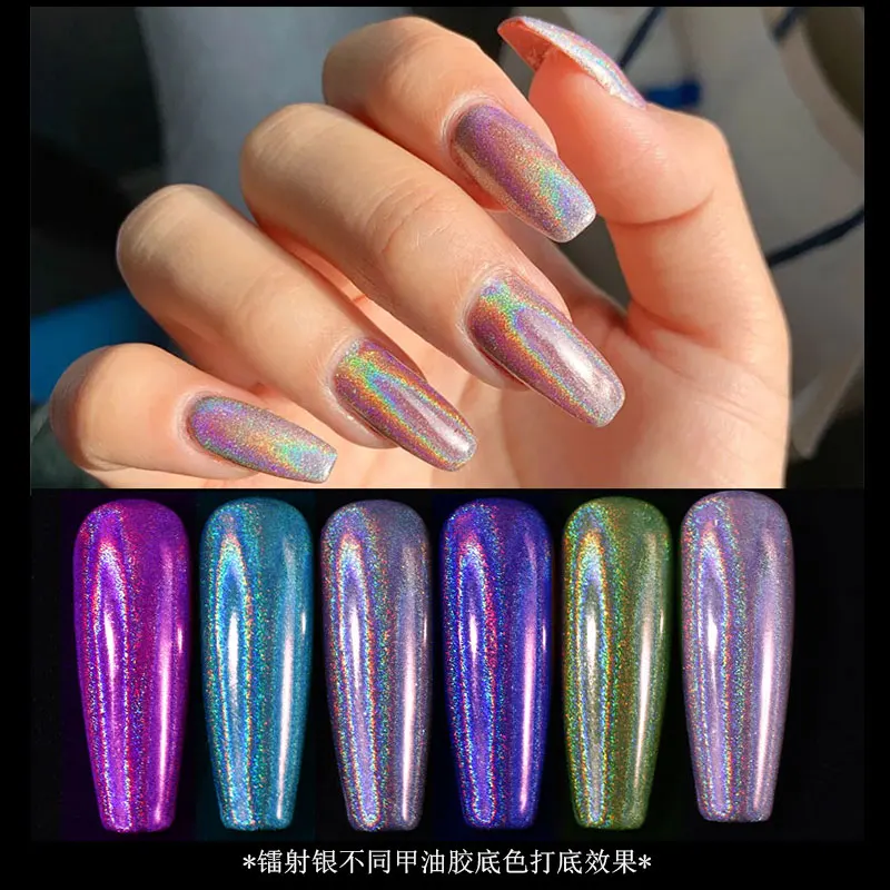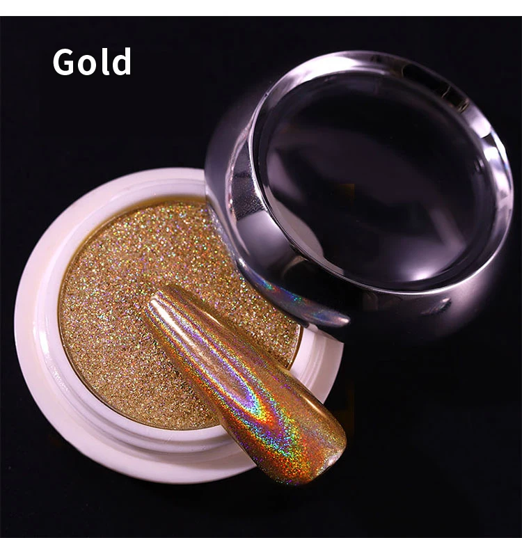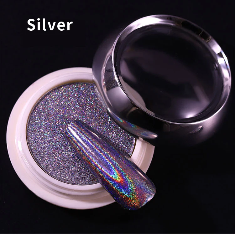1 коробка голографический блеск для ногтей, порошковый Лазерный цвет серебристый, Золотой блестками порошки погружения хром пигменты пыли блестящие, для дизайна ногтей аксессуары