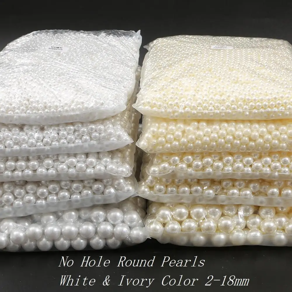 Бусины из АБС-пластика без отверстий, белые круглые бусины из акрила и АБС-пластика с имитацией жемчуга, изящные бусины россыпью с дисплеем для поделок и изготовления ювелирных изделий, 2-18 мм