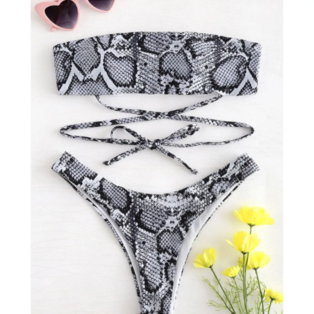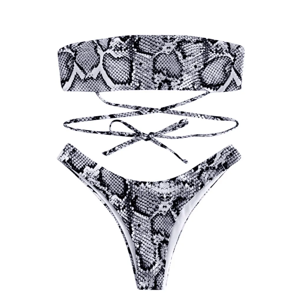 Женский бандажный комплект бикини со змеиной кожей, бразильский купальник, пляжная одежда