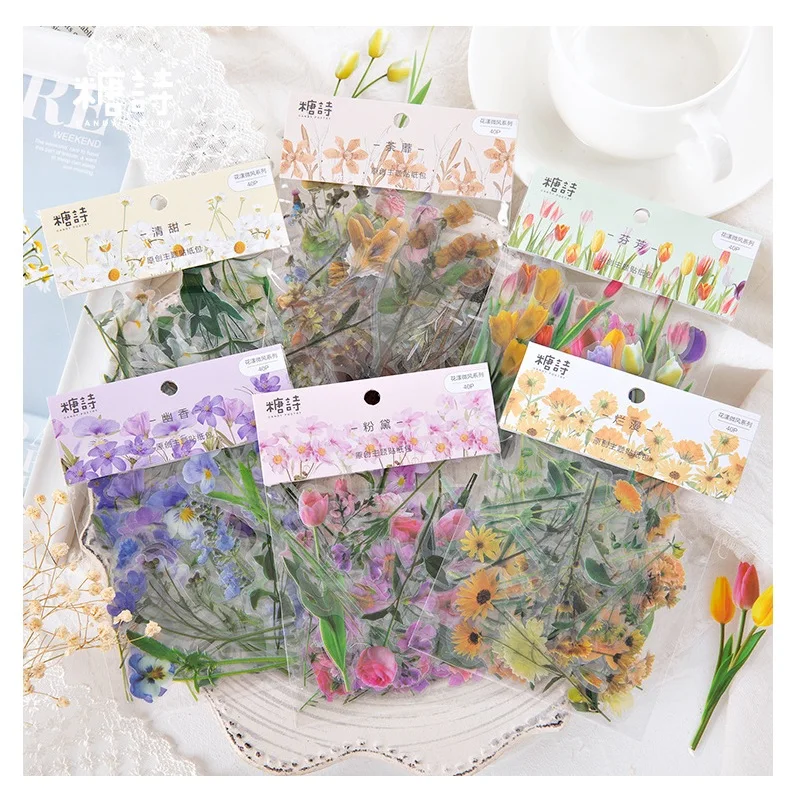 XINAHER 40 шт.пакет красивыми растениями Цветы Мини ПЭТ стикер для ...