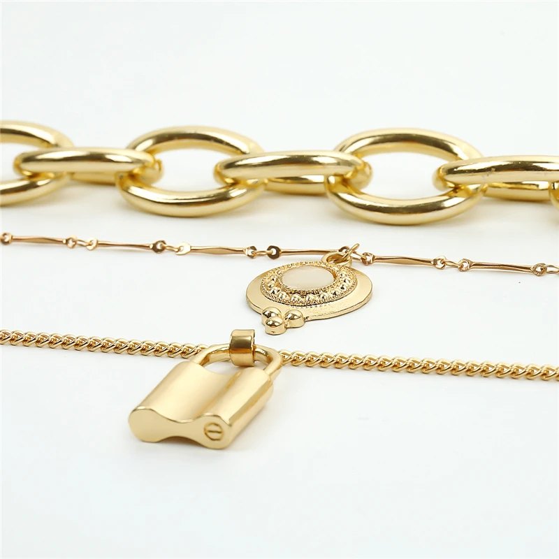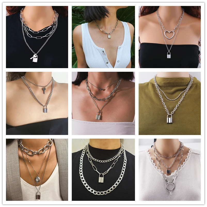 Ожерелье с подвеской-замком для женщин, крупное ожерелье с нескольк...
